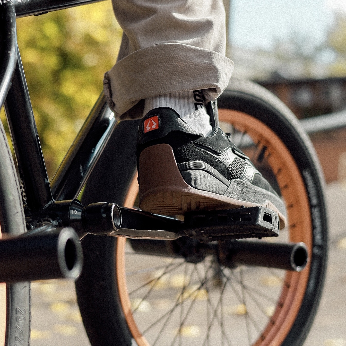 Минималистичный динамичный верх из натуральной замши, устойчивой к истиранию и царапинам, дополнен панелями из вентилируемой сетки. Многокомпонентная подошва из резины c бампером и цепким разнонаправленным грипом отлично цепляется за педали, а подушка из вспененного EVA надежно гасит ударные нагрузки.