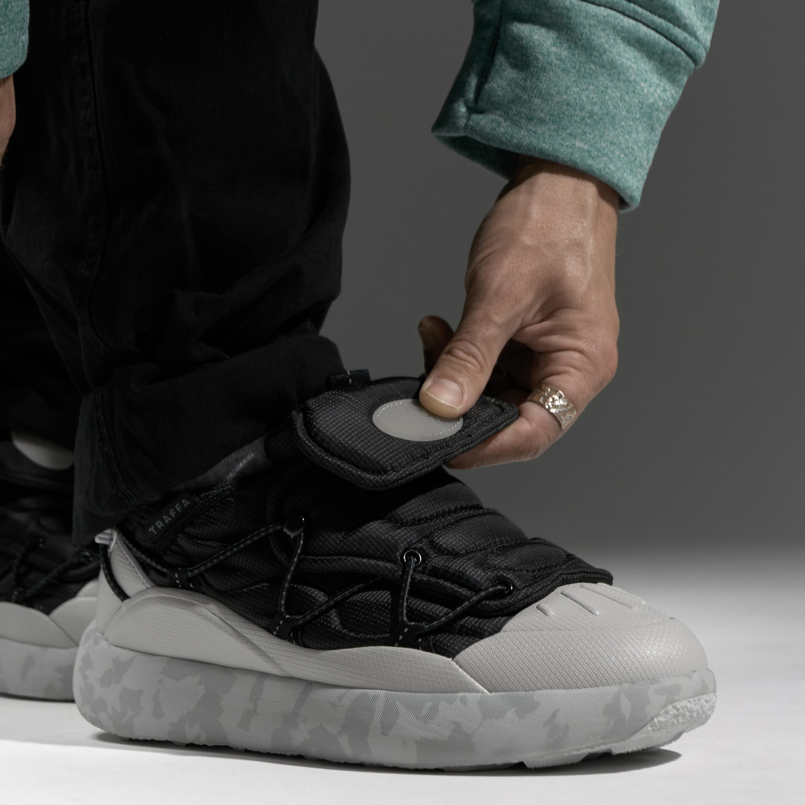 Футуристичные объемные кроссовки из стеганого нейлона с двойными клапанами надежно защищают стопу от ветра и попадания снега. Эластичная шнуровка позволяет легко переобуться.