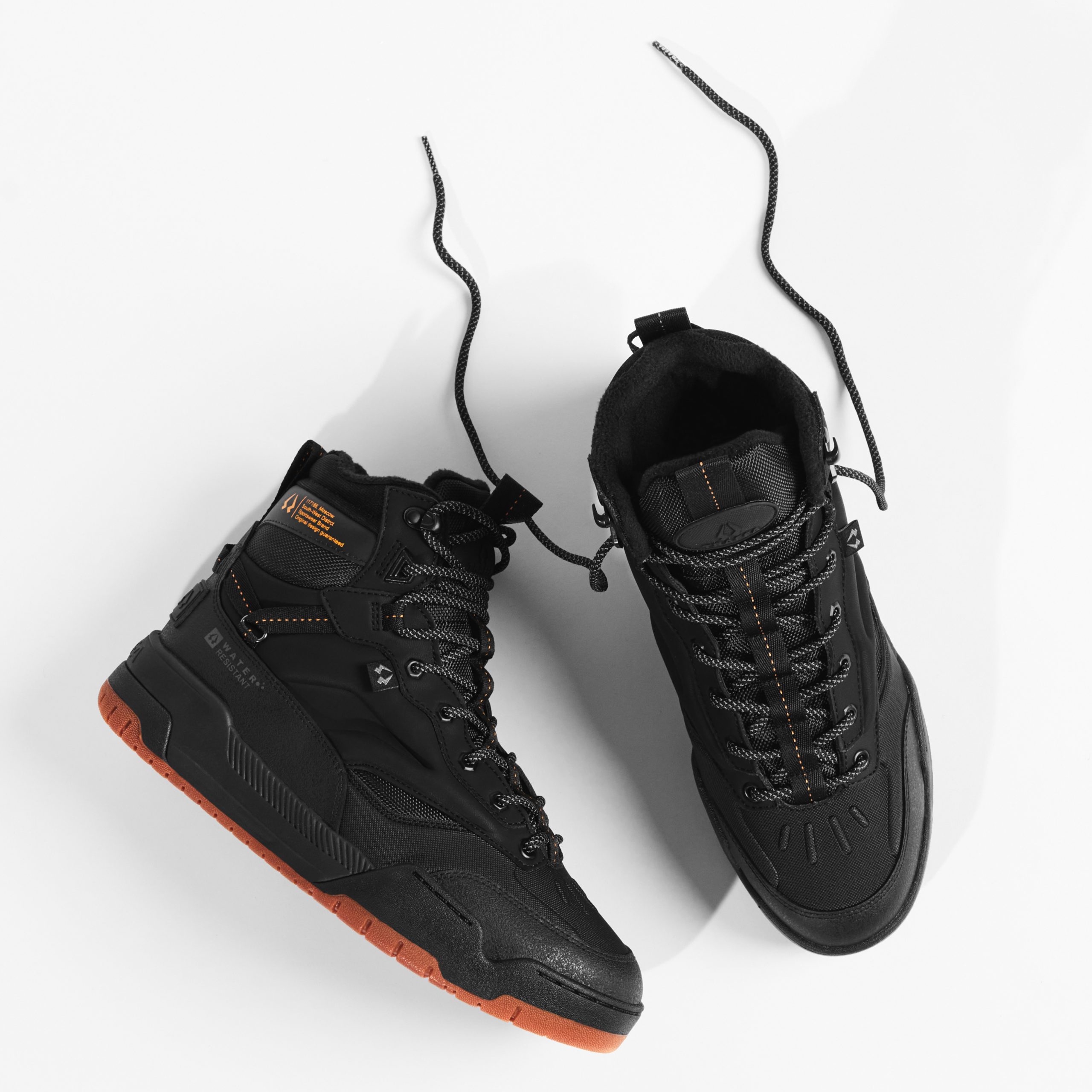 Высокий силуэт, выполненный из комбинации натуральной и синтетической кожи со вставками из прочного нейлона, надежно защитит от снега.
